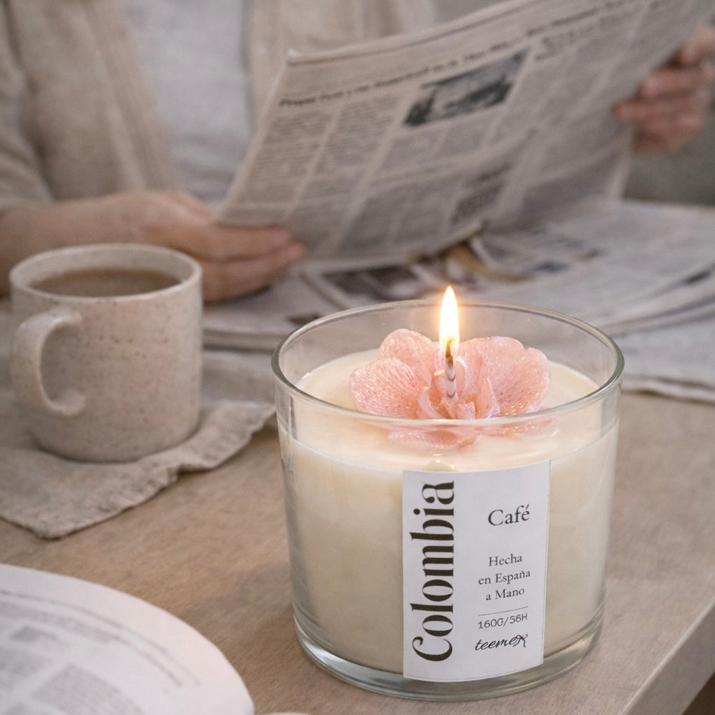Inspirada en Colombia y su cultura del café, esta vela acompaña los comienzos y los momentos de concentración activa.