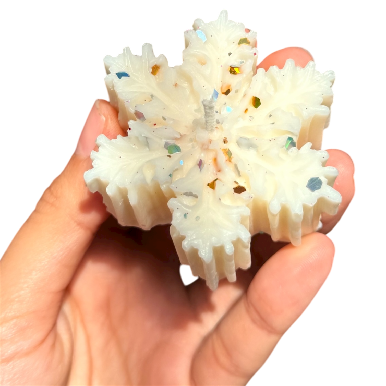 Nuestro copo de nieve aromático está hecho a mano con cera de soja y con aroma a turrón de Jijona: dulce, almendrado y totalmente navideño.