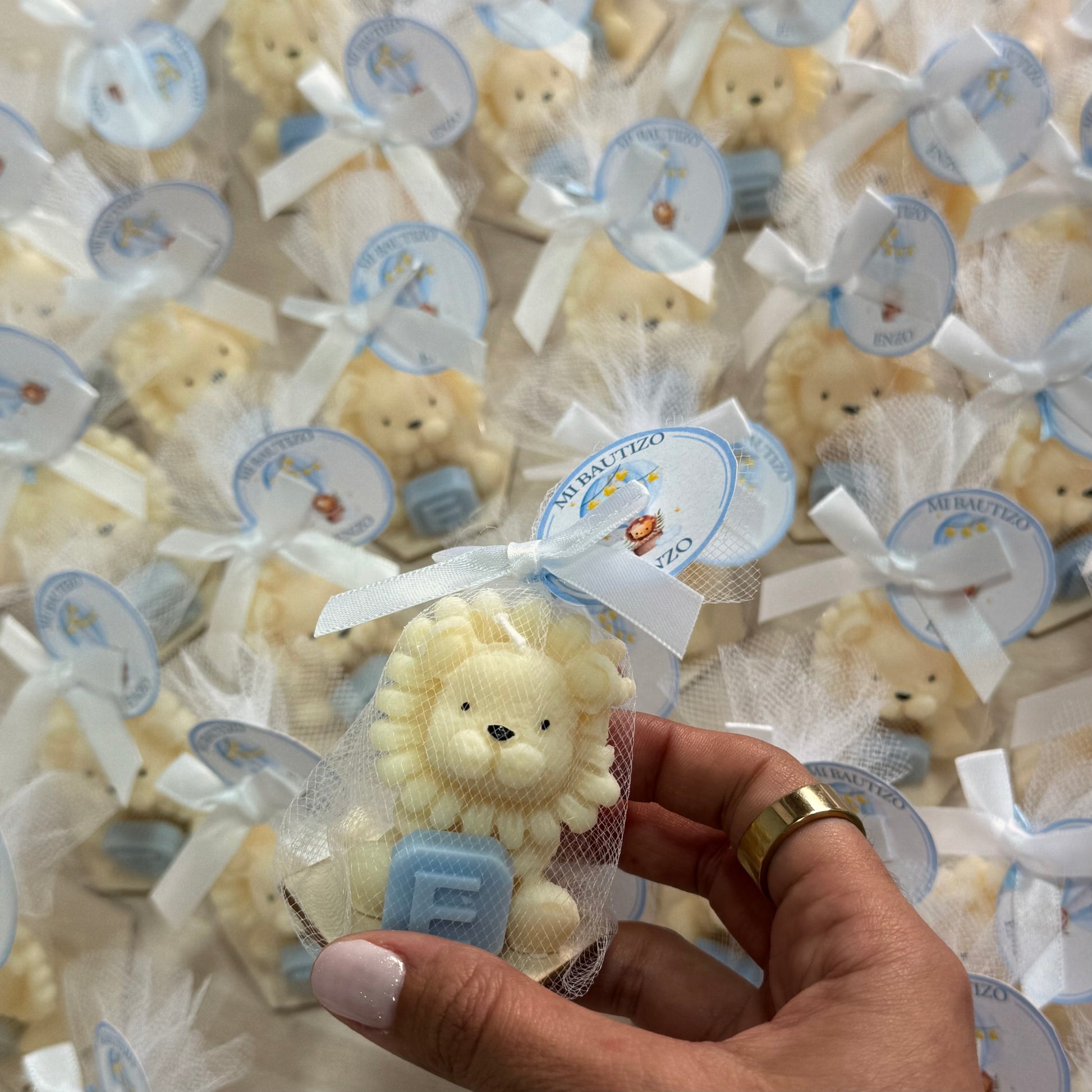 Cada león incluye la letra inicial del nombre del bebé. Dulce, simbólico y lleno de estilo.