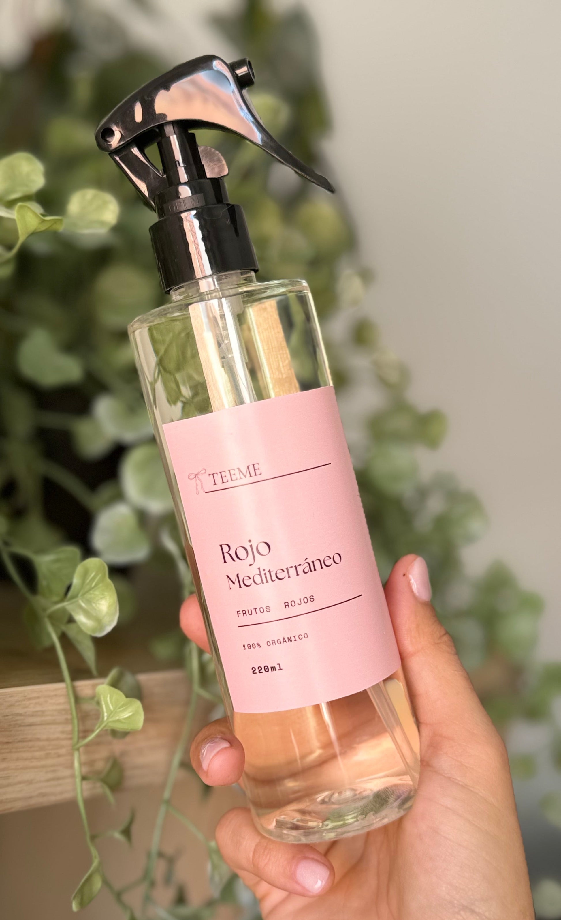 Rojo Mediterráneo es ese toque afrutado que transforma tus textiles y espacios en una brisa vibrante del sur. Su mezcla de frutos rojos, granada, frambuesa y un toque de flores blancas llena el ambiente de energía, dulzura y frescura.